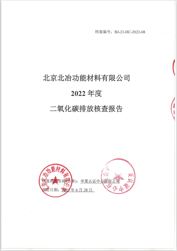 北冶公司發(fā)布2022年度二氧化碳排放核查報(bào)告
